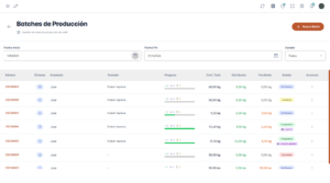 Basándonos en esas conversaciones, construimos dentro de Kiby ERP un módulo nativo de fabricación pensado específicamente para las necesidades del sector del café. No queríamos adaptar una herramienta de fábricas de tornillos; queríamos que hablase el idioma del café.