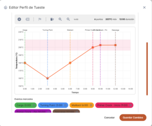 - ✅ Curva de tueste en tiempo real + Eventos por voz: No hace falta que estés pegado a la pantalla. El sistema te avisa por voz de lo que está pasando.