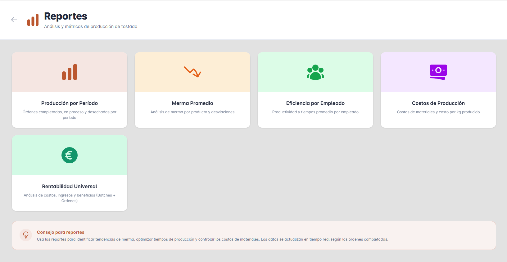 - ✅ Registro de incidencias: Control total sobre las paradas, limpiezas y mantenimiento de las tostadoras.